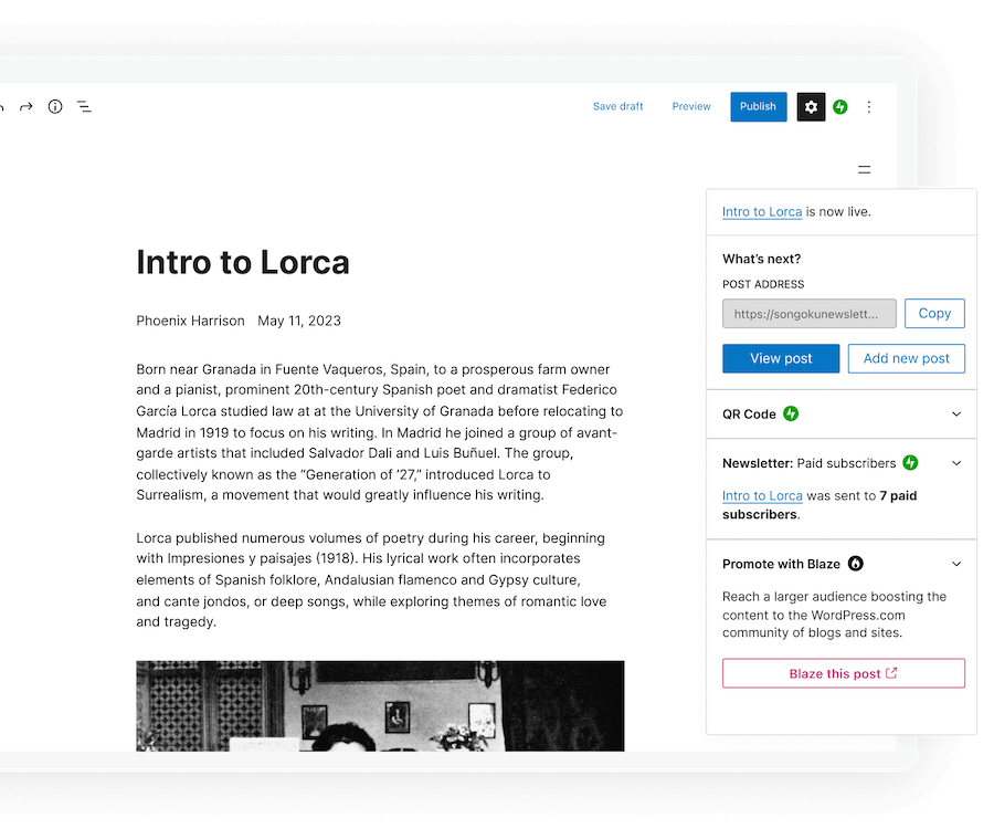 Grow your subscriber list with our easy‑to‑use signup form and the power of the WordPress.com Reader.